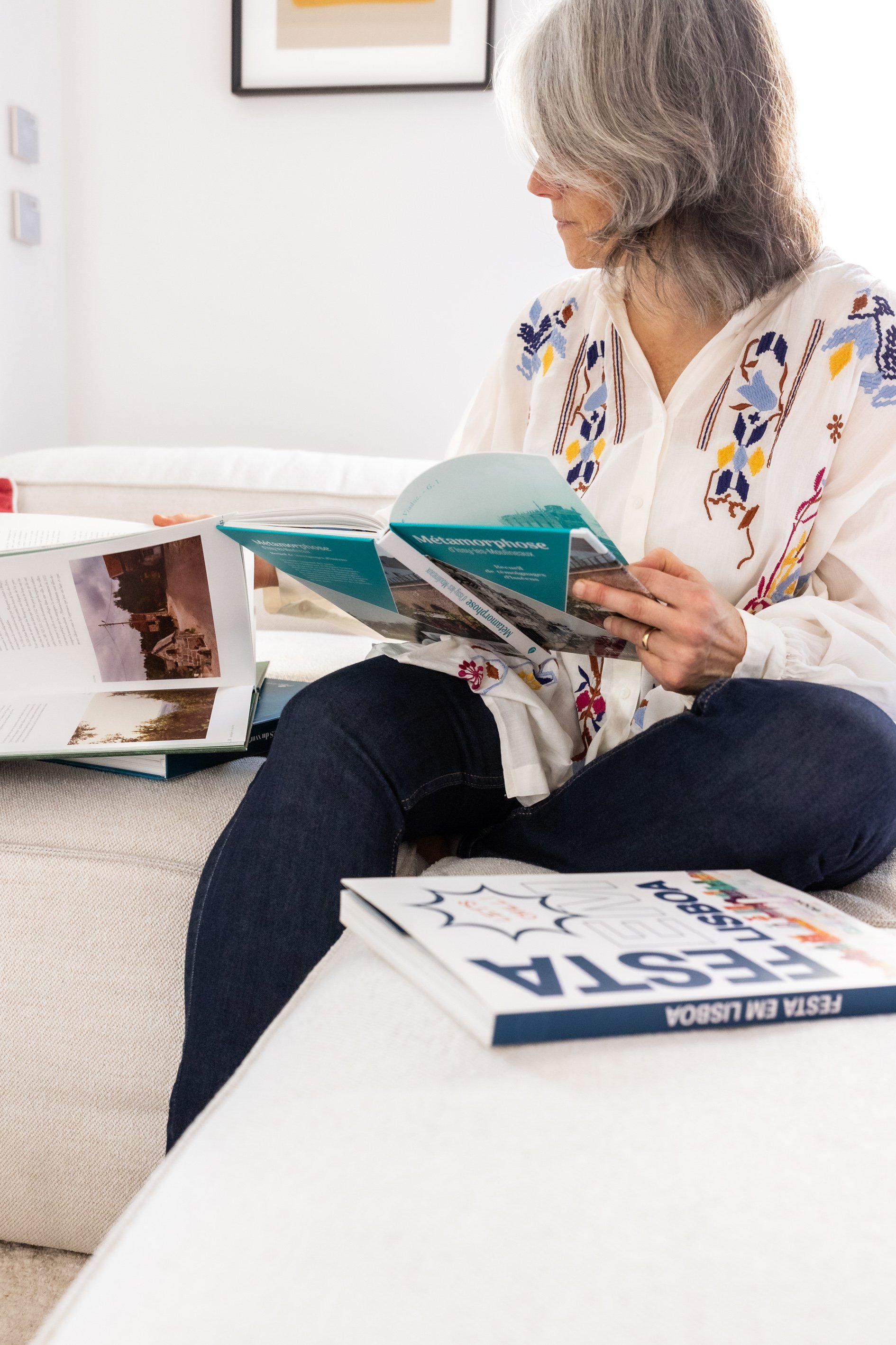 Nous avons tenté à travers la maquette très joyeuse et colorée de traduire la magie d’un week-end où Sibyl et Alex fêtaient la vie, le soleil et les copains. On le sait, on y était. Pas une page ne ressemble à l’autre et nous avons eu plaisir à les animer avec des éléments graphiques issus de la belle culture portugaise.